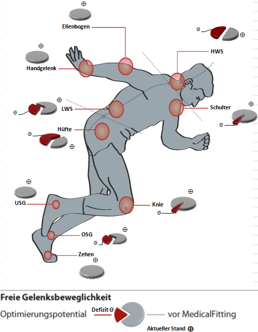 Abgleich zwischen vorhandenen und erforderlichen Gelenksbeweglichkeiten Beurteilen der gewebsspezifischen Widerstände und deren Auswirkungen auf die Antriebsmuskulatur.